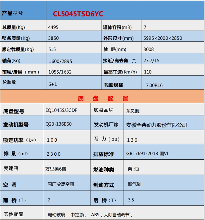 底盘品牌:东风D6蓝牌