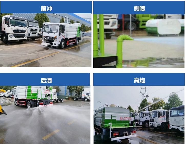 支持前冲、后洒、侧喷多种洒水作业模式,可选配高位花洒、绿化喷枪,满足不同作业环境的需求。