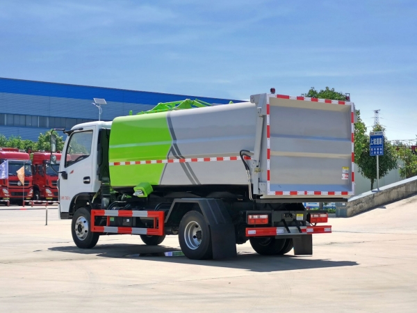 上装配置:新款箱体,美观大气,采用边三底四Q345锰板,箱体为武钢碳钢板材料,箱体内部做防腐防锈处理,弧形耐压箱体带全推装置,后门液压锁紧,整体密封性好,车尾部带厚橡胶密封条带污水收集槽,防污水滴漏,有效容积7.8方,采用江苏中梅多路阀,合肥长源液压泵,电动手动双操控系统,室内外均可操作,箱体侧方带挂桶架翻转上料机构,箱体可按要求喷绘图案和字样。
