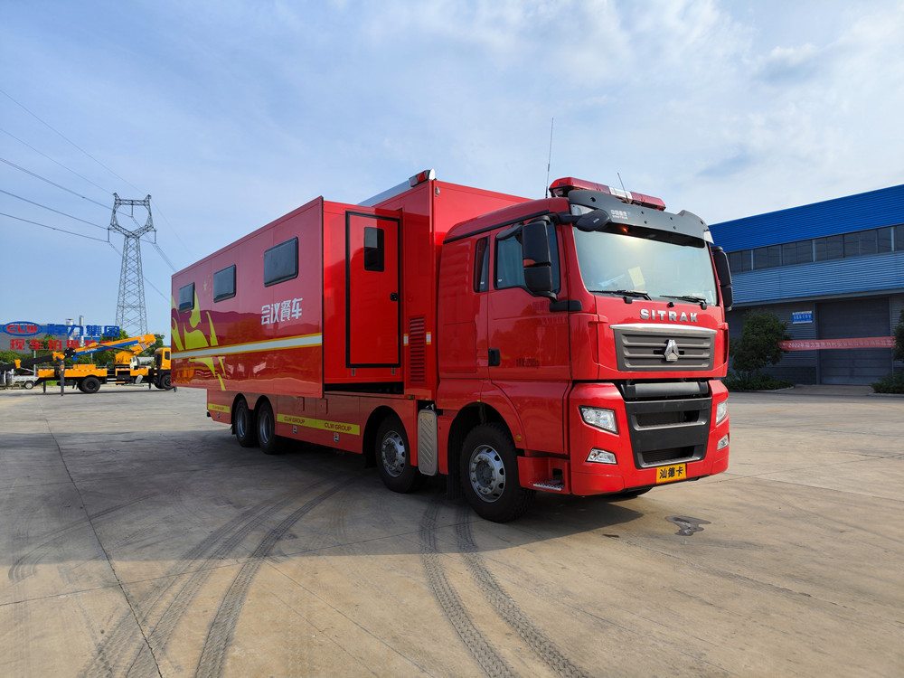 重汽汕德卡会议餐车依托重汽高可靠底盘、移动会议系统及餐饮保障设施,为企业管理、应急抢险及大型活动提供舒适、高效、可靠的移动会议与餐饮解决方案。整车可根据客户需求定制办公、餐饮及后勤设施,实现现场会议与用餐保障一体化。