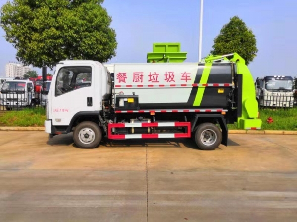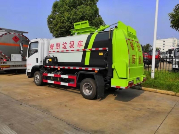 餐厨垃圾车,又称:泔水车,可根据客户对垃圾装载量的不同要求选用类型不同的底盘,可装载2-10吨垃圾的餐厨泔水车,承载餐厨泔水容积为圆形或方形罐体,有效容积达到90%,罐体内分上、下两层,下层为固液分离后污水收集箱,污水箱两头高,中间低,低端设有出水口,以保证污水排放干净。