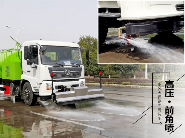集前冲洗、后洒水、侧喷冲洗、高压清洗于一体,可根据路况自由组合,清洗覆盖面广、效果好。