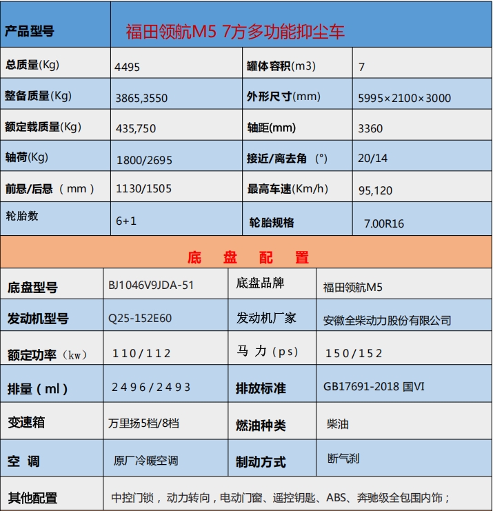 福田领航蓝牌 7 吨洒水车以蓝牌通行、高效作业、稳定耐用、维护便捷为核心优势,广泛适用于城市道路、园区及工地的洒水降尘和绿化养护,是环卫及企业内部道路作业的高性价比选择。