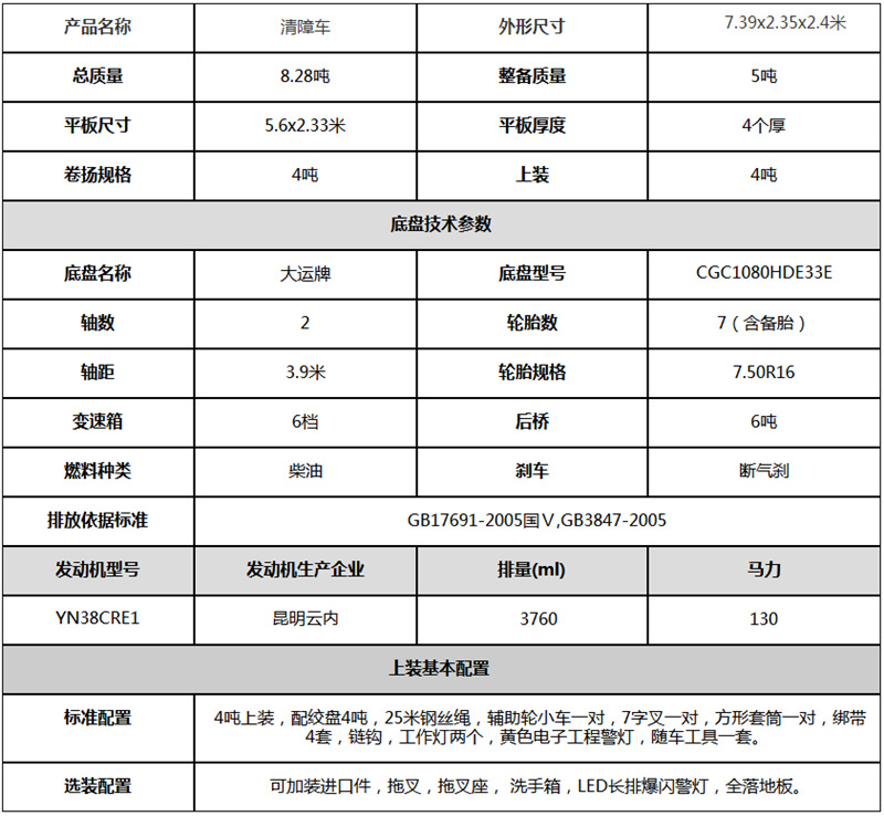 大运平板一拖二清障车