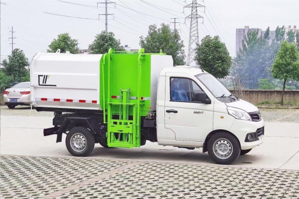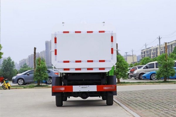 该车箱体容积约4立方,箱体前部侧面带有挂桶提升机构,可自动举升垃圾桶倒入垃圾,带自卸功能,尾部装有橡胶密封条,防污水滴漏,杜绝二次污染。挂桶垃圾车可根据客户要求搭配120升或240升塑料桶和铁桶。