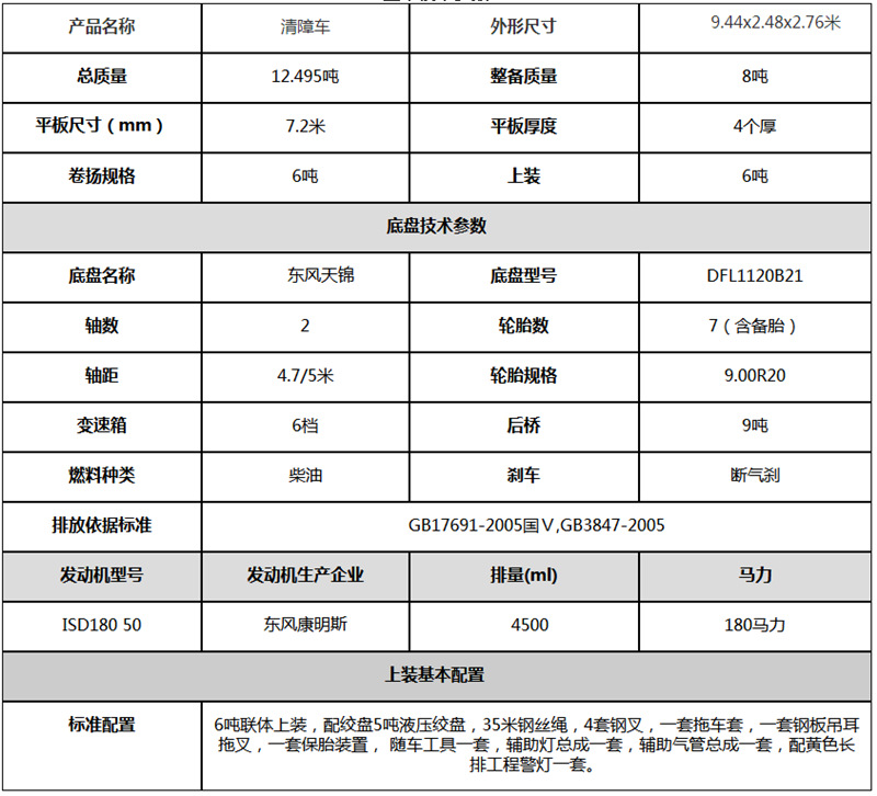 东风天锦7.2米平板清障车