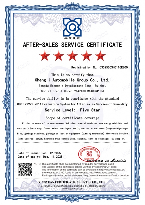 售后服务持续改进能力评价认证证书 12星(程力专汽)