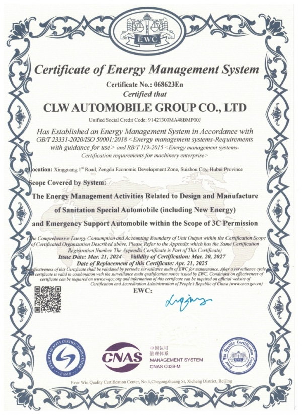 能源管理体系认证证书(专汽)